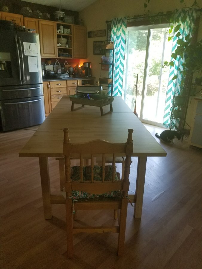 I tackled the living room and kitchen: put away all of the clutter, moved furniture, swept, mopped, did all of the dishes, tossed a load of laundry in, hung up a broom holder I’ve had for about 16 months (thanks to Ted for his help on that one – no idea why I procrastinated so long), got the peaches in the fridge, and fixed the latch on the cast iron closet (thanks to Tyler for his help on that one)! Jake was an awesome little gopher and helped put items away where they belonged.