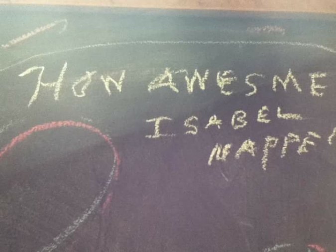 Gramma wrote this on the chalkboard wall in the trampoline room when we visited David and Becky Britt seven years ago. It popped up in my Facebook memories just now.