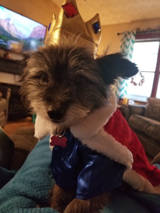 So what do I do since I’m stuck in my recliner? I went through the dog clothes basket and dressed up Smidge!
