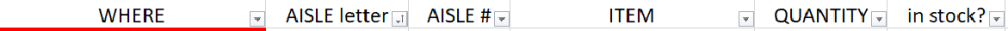 If you’ve completed all four steps above, you now have a master grocery list for that particular store! You can add to it any items you find you need in future grocery lists by simply following the steps above. To get a shopping list for a particular trip, I just hide the rows of anything I don’t wish to buy during that particular trip. Sort the AISLE LETTER column alphabetically, and your list is now in a quick and easy order to help you flow through the store and get in/out as quickly as possible! Print a copy, and you’re ready to get in/out of there as fast as you can.