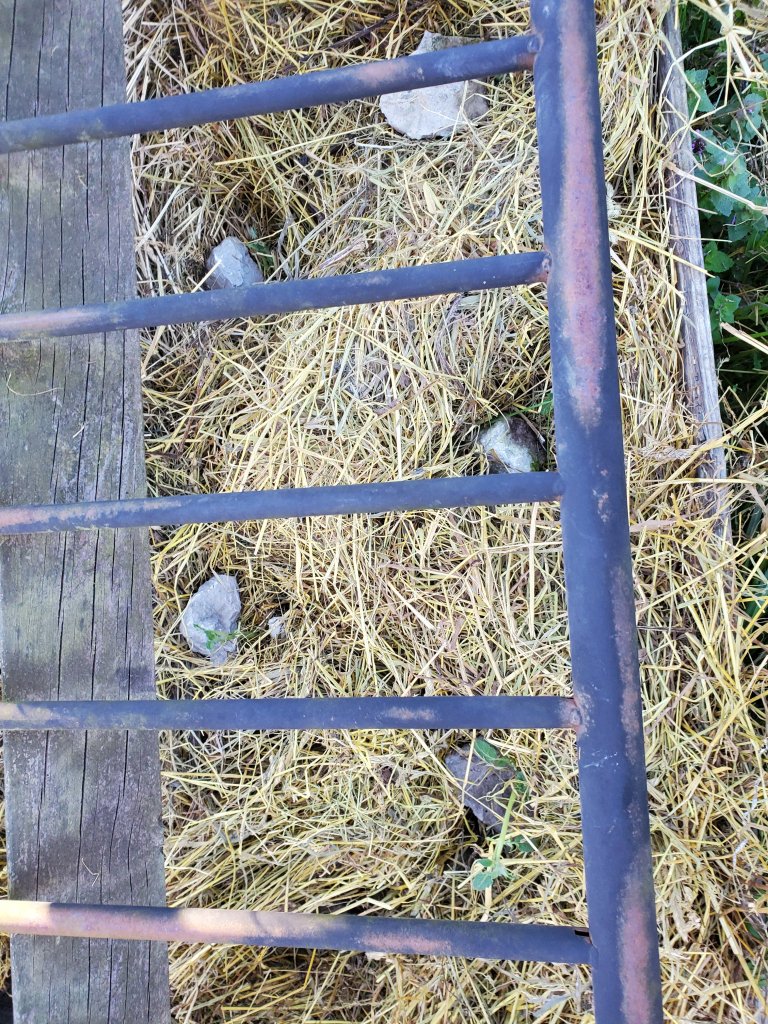 It definitely works! The tall plants are the potato eyes that I simply set in a dish of water (changing the water every two or three days); they grew roots like crazy so I then stuck them in this little pot of dirt I had inside. This is ONE WEEK of growth in dirt! I was told to plant them in the ground now. If you look closely at the photo, you can see three very small sprouts that look like onions; those are garlic cloves that sprouted so I took a chance and shoved them in the dirt as well. Again – that’s just ONE WEEK of growth in dirt on the garlic in the dirt as well! I planted each one in a raised bed because I read that if the dirt is really hard, then the potatoes that grow will be small and possibly shaped weird (which I don’t want). This raised bed is about two feet deep and about 2×3 on the sides and was what I grew zucchini and yellow squash in last summer. I broke up the dirt in it last week and pulled out any weeds that were starting the next day, and then I planted these potato plants in there last night (4/2/2020), putting them about a foot apart. I fit six potato plants in here (exactly what I had in my little kitchen pot). I could have fit nine plants (I have a second pot of potato plants growing in the kitchen), but I want to grow peas to vine up the frame that sets over this raised bed so I left the back row open for the pea seeds which are getting planted today.I covered the box in thick hay to try to choke out any weeds. I left a little space around each potato plant, and as an afterthought, I stuck a rock behind each plant (just grabbed some from the driveway) in case something gets in there and kicks around the hay; I didn’t want to “lose” a plant and have to look for it. I don’t feel experienced enough to know what’s a plant and what’s a weed, so I wanted to provide a sort of “cheat sheet” for myself – the rocks are behind the potato plants. Anything else that doesn’t look like those six plants will be hand-pulled out weekly (besides the peas which I know what they look like)!This is what a garlic clove looks like when it sprouts in a pot of dirt in the kitchen! According to Google, you stick them in the dirt, pointy side UP, with just the point barely sticking up out of the dirt. Then just water the pot of them. I did just that, and look – this is ONE WEEK OF GROWTH! I am impressed. The white things at the bottom are roots that the clove has put out. If you live in an apartment and don’t have room for anything else, I am convinced that you can at least grow your garlic in flower pots in a sunny windowsill or on your balcony or porch steps.I planted these three cloves in a different raised bed, spaced about six inches apart, and I covered them with thick hay as well (though not as thick as the potatoes because I didn’t have a lot of it left for the garlic cloves). These cloves are planted right on the right side of the box in a row so I am not worried about “losing” any of them if something kicks the hay around; I have the hay here to try to keep weeds choked out (hopefully – at least that’s my plan!).
