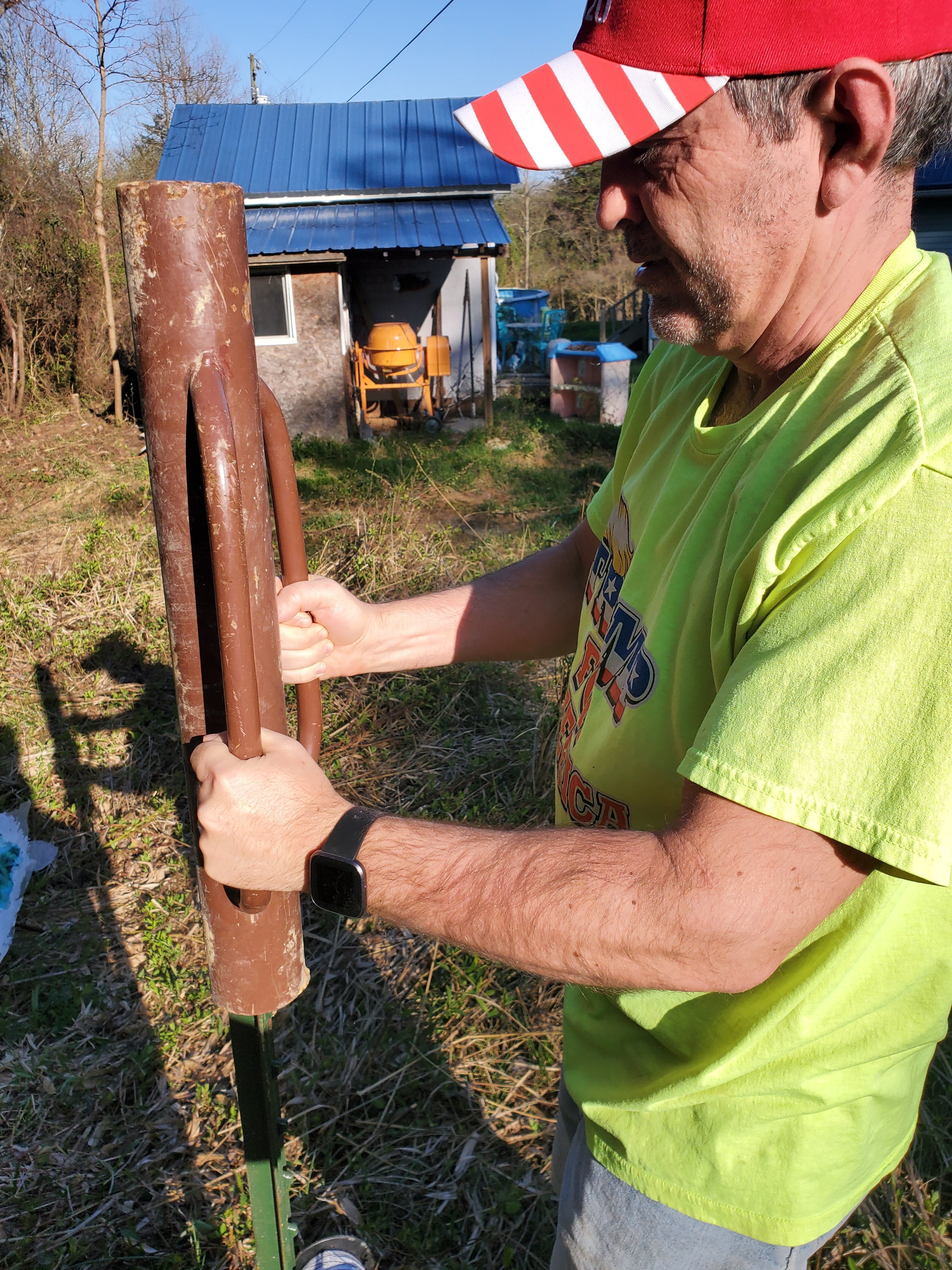 Ted spent all of Saturday setting fence posts for the new coop’s chicken yard. He used up t-posts that he’d stashed in the barn a year or two ago, and he repurposed an old gate and some hardware so we can easily go in/out of the new chicken yard.