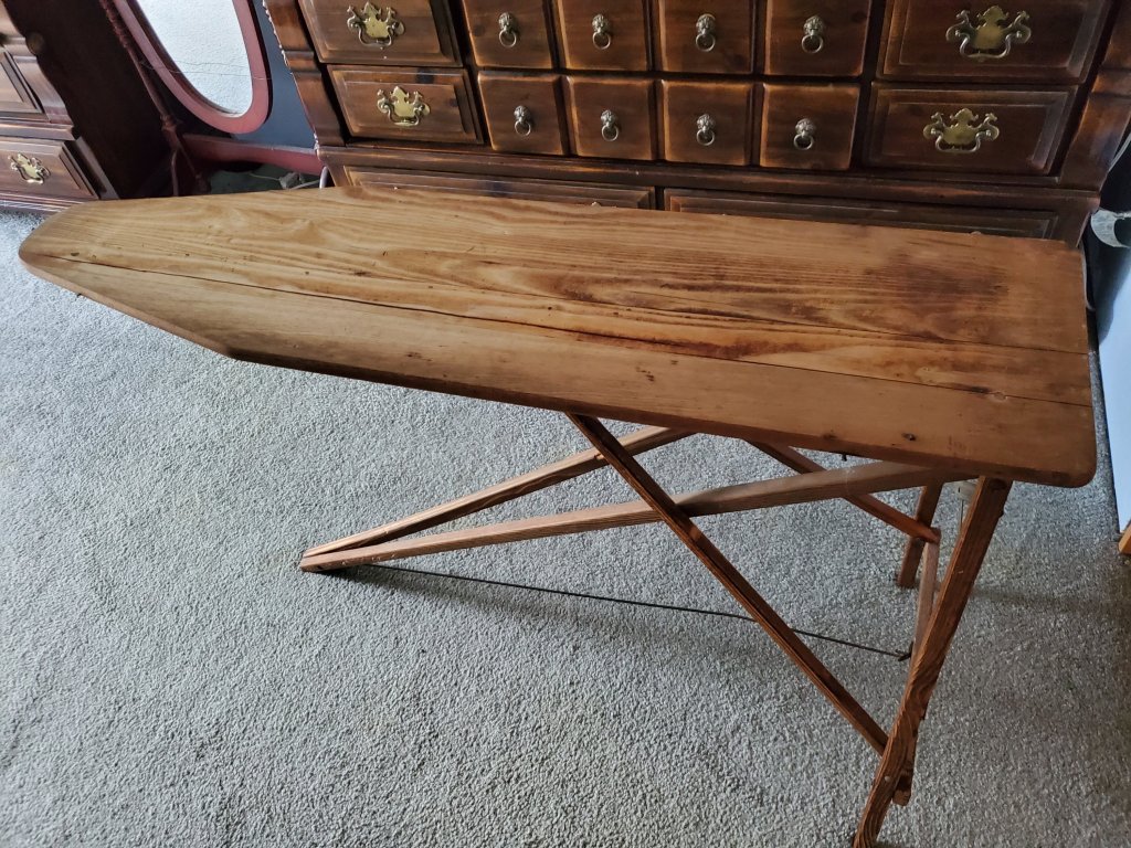 I’ve had this old ironing board for years and years. It’s an antique. I have no idea how old it truly is, but I know it has to be at least 75 years old if not older. I think I bought it at a yard sale or a flea market for $10. It’s been worth every single penny.