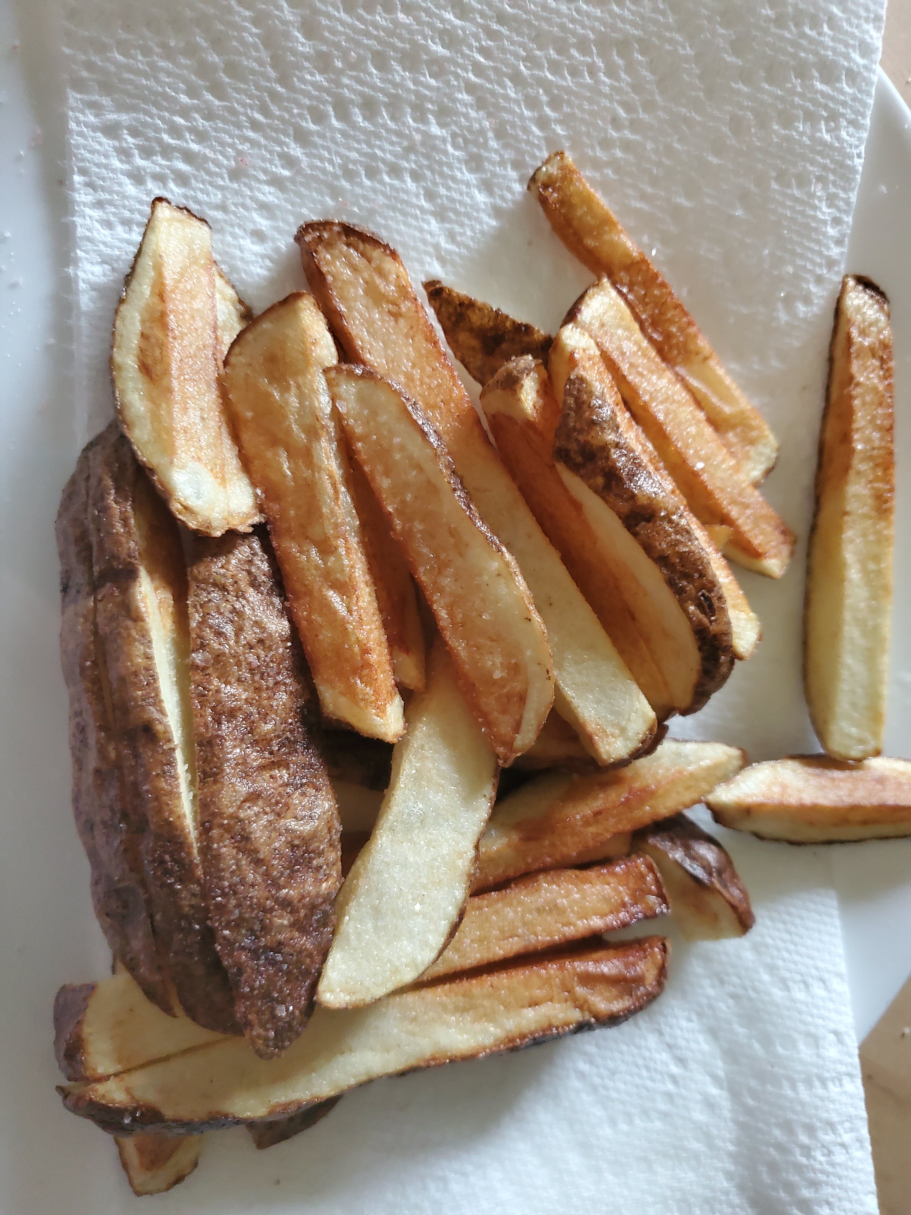 I see a lot of people complaining that they can’t get bags of frozen french fries and other “convenience” foods right now. I can’t help but notice that the produce section is pretty full of fresh fruits and vegetables…and then I realized that maybe some folks don’t know you can make your own fries from scratch so I’m going to show you how.