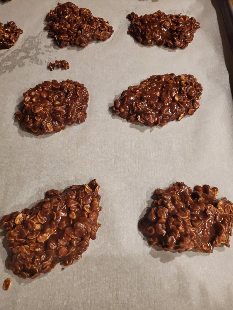 I was so pleased with how the arch turned out that I wanted to make Ted a little something special so I looked up his favorite cookie recipe and whipped him up some no-bake cookies using this recipe!