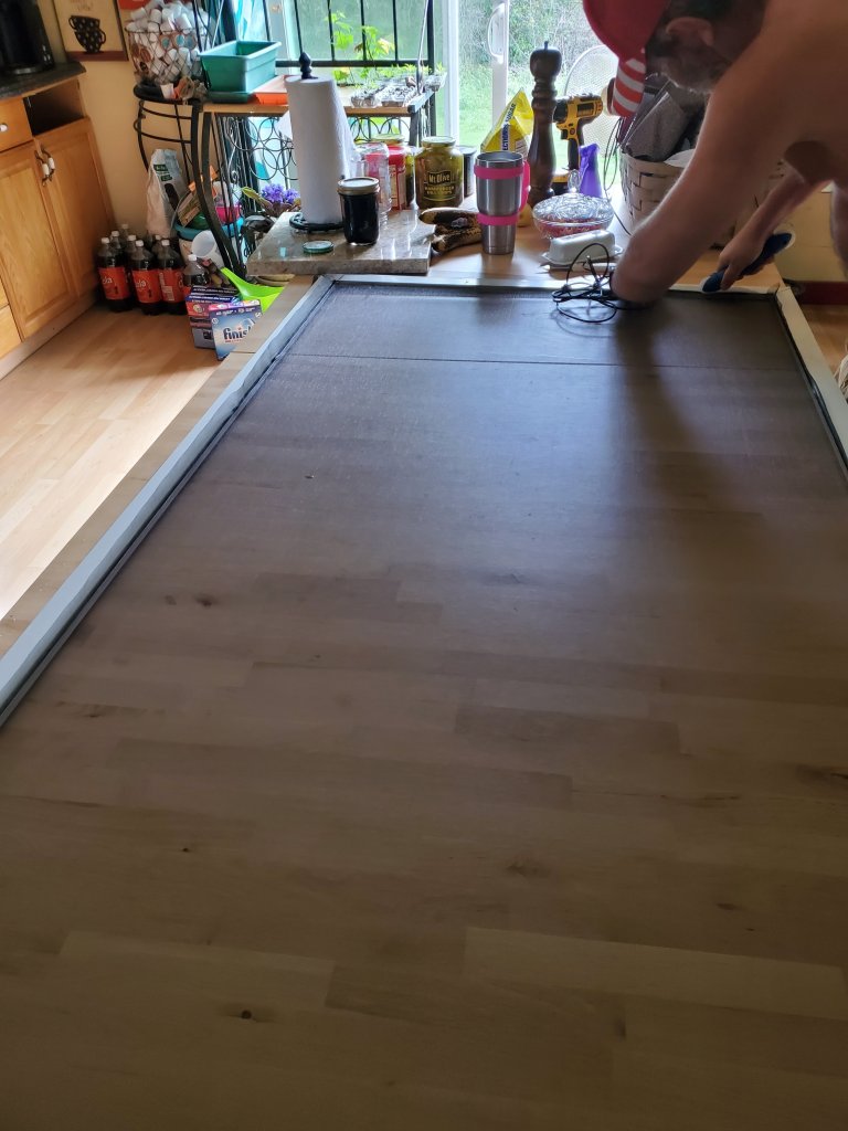 7:45am – I got two hours of sleep. He started crying again at the storm door. The dog warden is on her way to get him. He tore the screen door down and busted a hole clear through it.