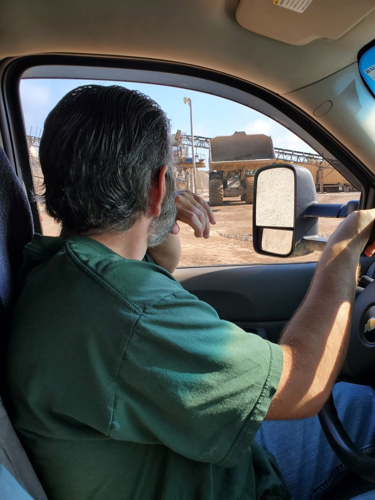 For folks who have never hauled their own gravel, let me explain the process. We drive our truck and dump trailer to the nearby gravel pit, and we immediately drive onto a huge cement bridge type thing (called a scale) which weighs our truck/trailer combo empty and records that weight. We tell the man at the front in this little one room building what we want to buy, and he waves us on up the hill.