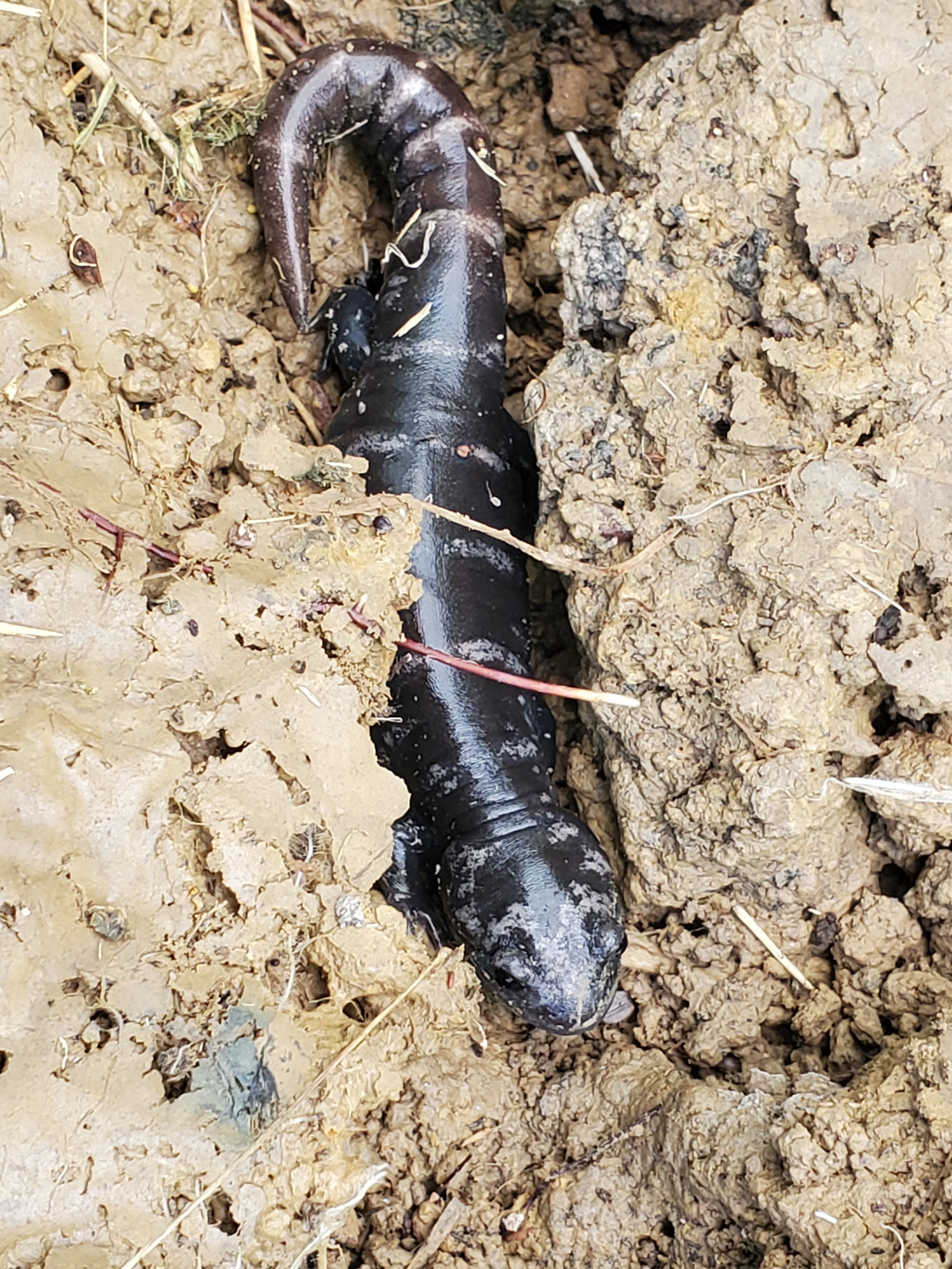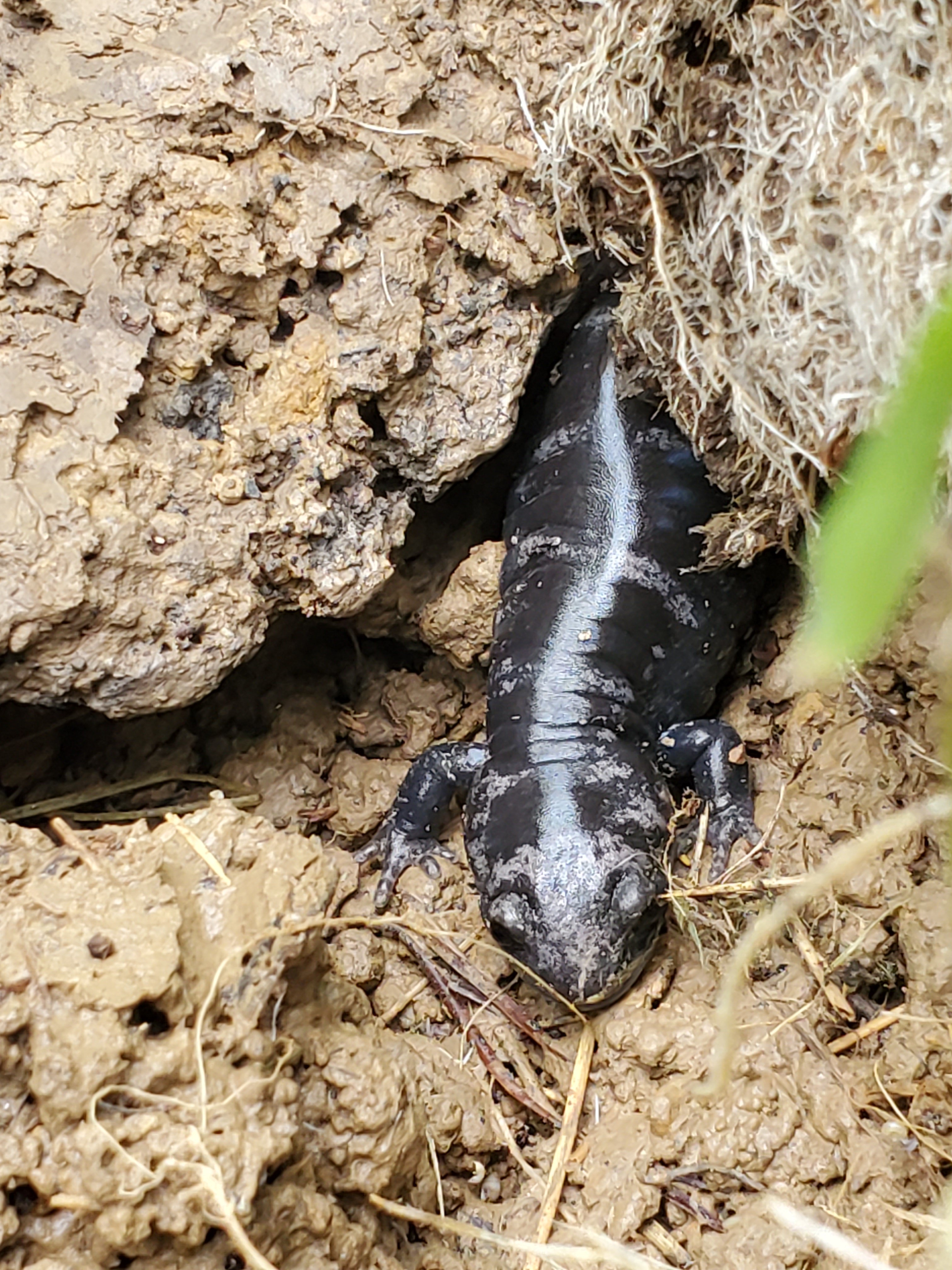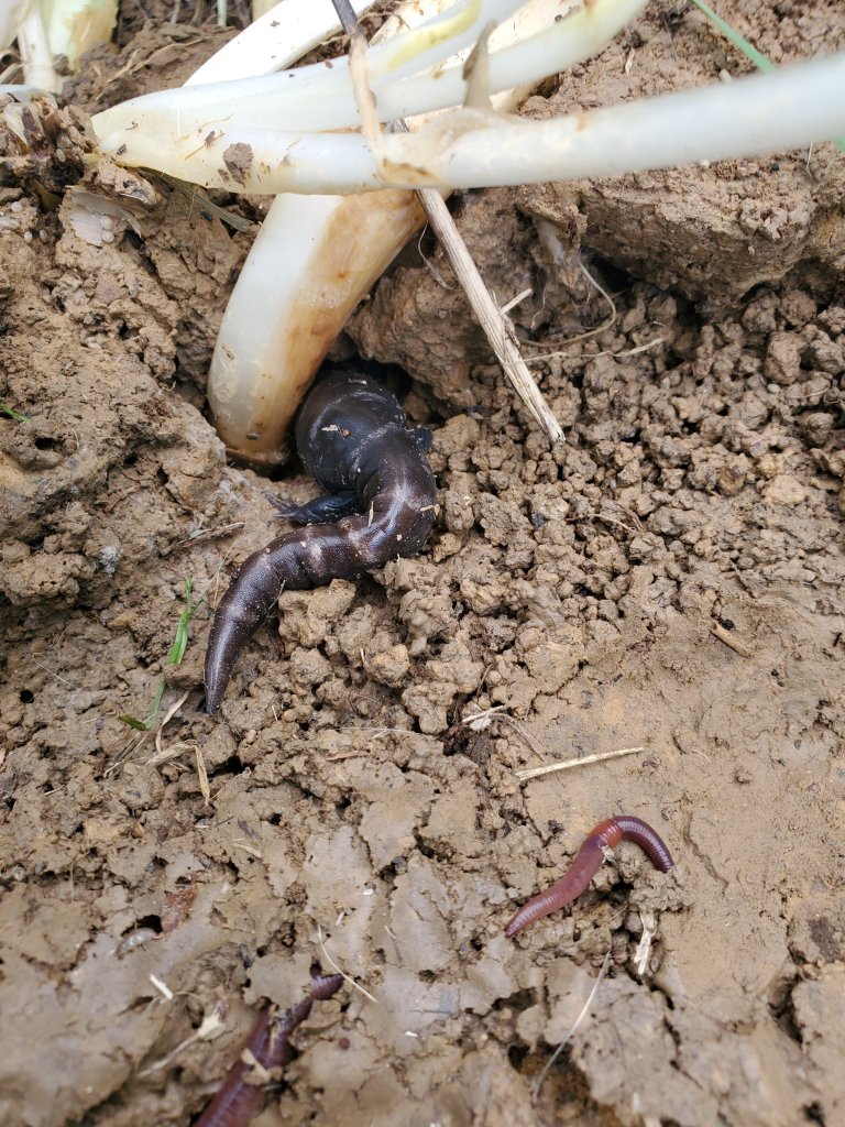 While working on the flowerbed around the koi pond this past weekend, Ted found this little guy. We had no idea what he was, and then I remembered that I’d downloaded an app called Seek earlier. I took a picture of the little guy with the app’s camera feature, and it immediately identified him as a mole salamander.