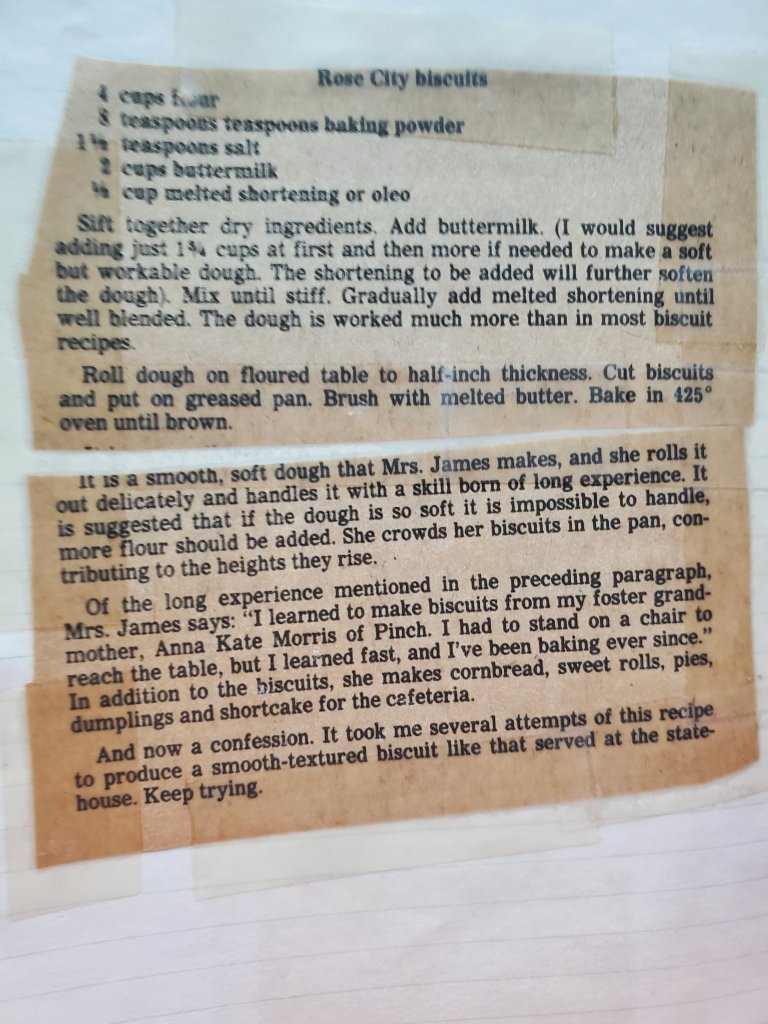 I’ve talked before about the old recipe collection that I purchased at a flea market , and the other night I was looking for a good biscuit recipe when I thought to look through the binders. I found several but decided to try the Rose City Biscuits. This recipe was super easy to make.
