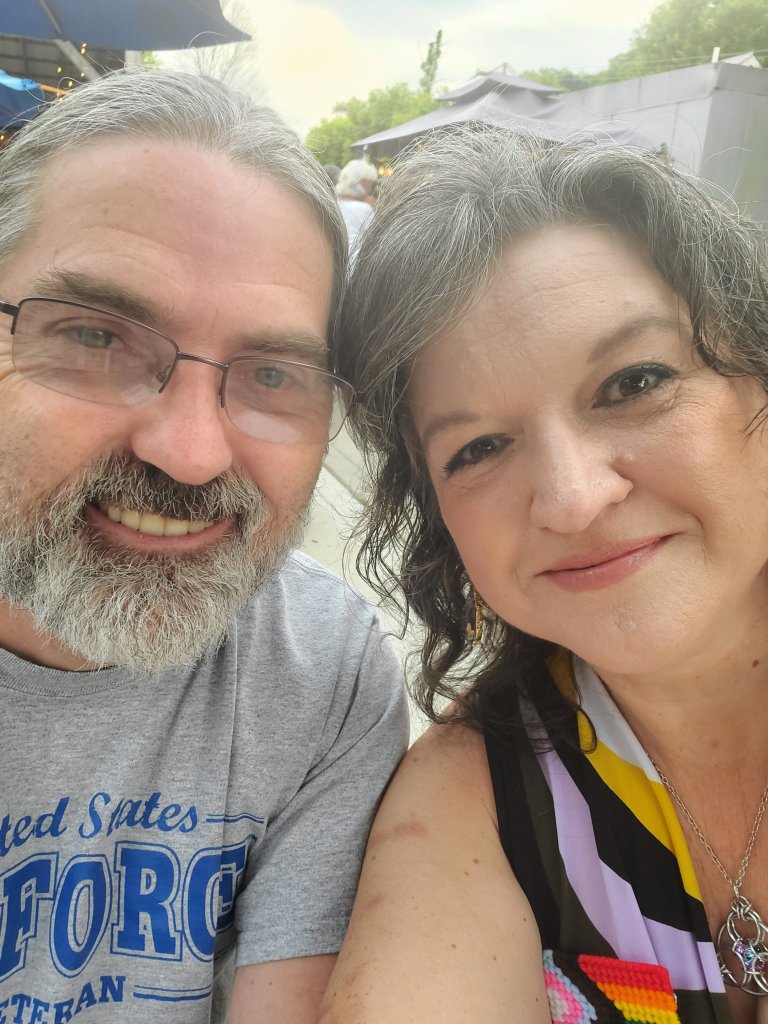 We went to our first ever Pride event last night (a drag show). It was so much fun! We’re looking forward to going again next year, too. The place was full, and I had to ask a group if we could sit at their table; they said yes and spent the evening talking to us and making us feel so welcomed. One couple in particular was so sweet (bought us drinks, asked several times if we were having fun, gave us a Pride pin that Dan’s mother handmade, explained how the tipping works, etc) – Dan and Dave, if you ever see this, please know that we really appreciate the time we got to spend with you and that you are so kind and funny!